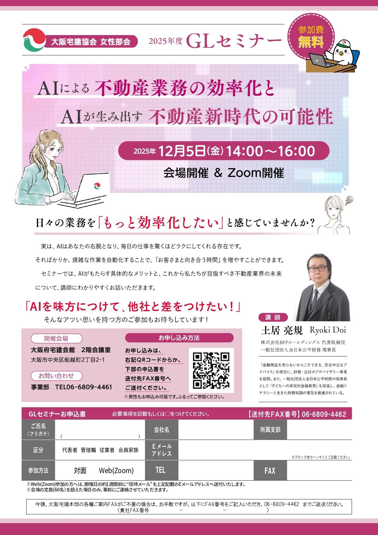 | 2025.07.09 | PRtimesに「8月28日不動産会社の生成AI活用座談会&交流会に大阪宅建が開催協力」を掲載しました。 |